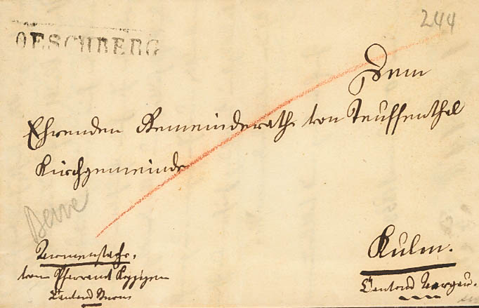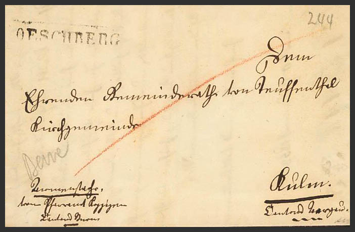 1853. OESCHBERG to KULM. OESCHBERG brand, in black. MAGNIFICENT.