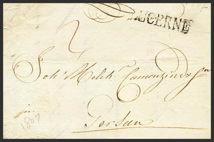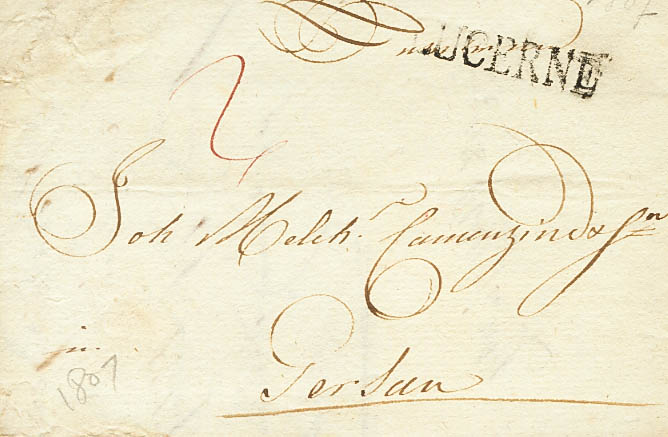 1807. LUCERNE to PERSAN (FRANCE). LUCERNE brand, in black. MAGNIFICENT.