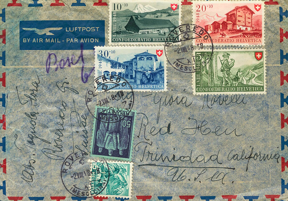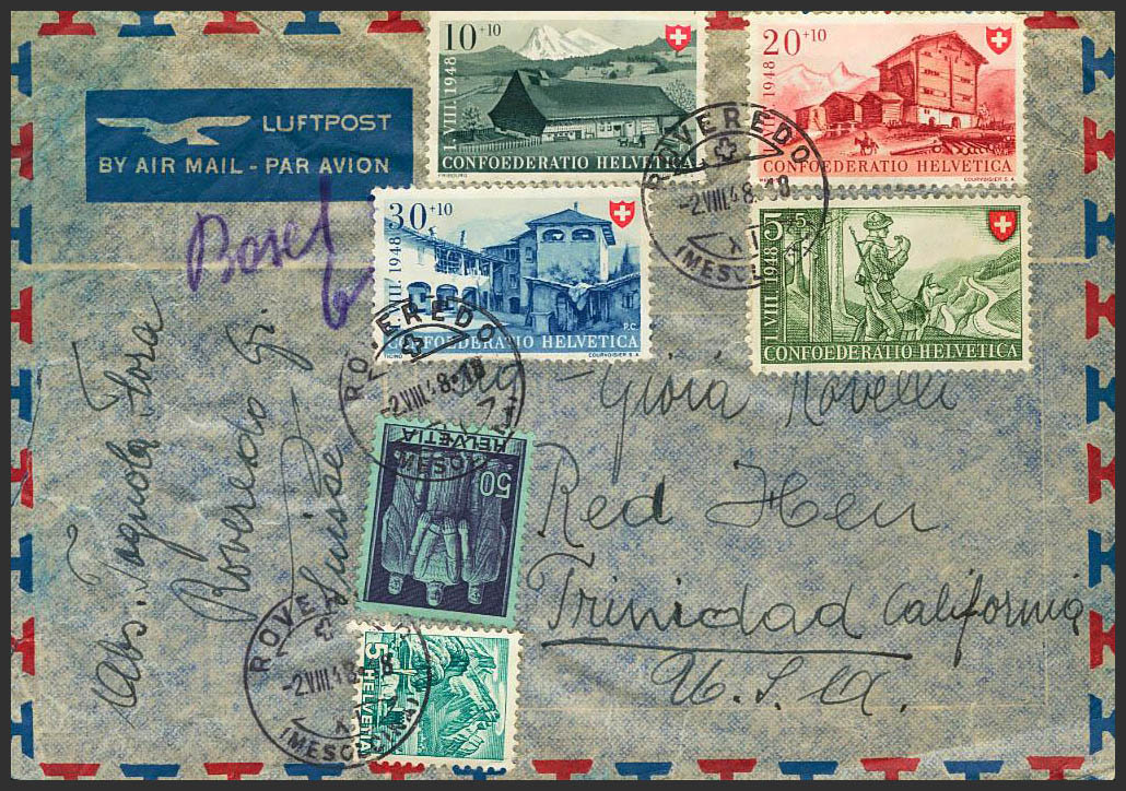 Yvert 457/60. 1948. Complete series, 50 cts and 5 cts. ROVEREDO to TRINIDAD (USA). MAGNIFICENT.