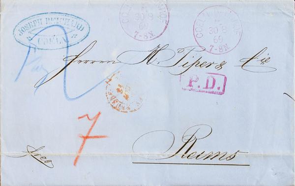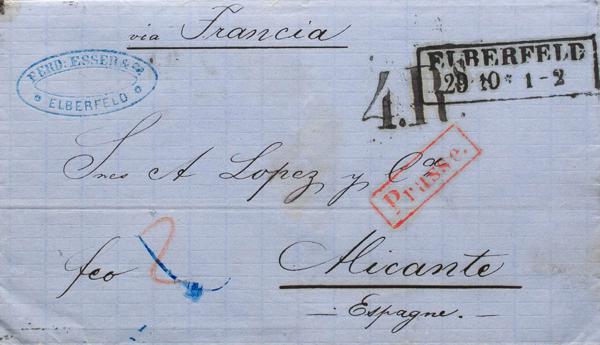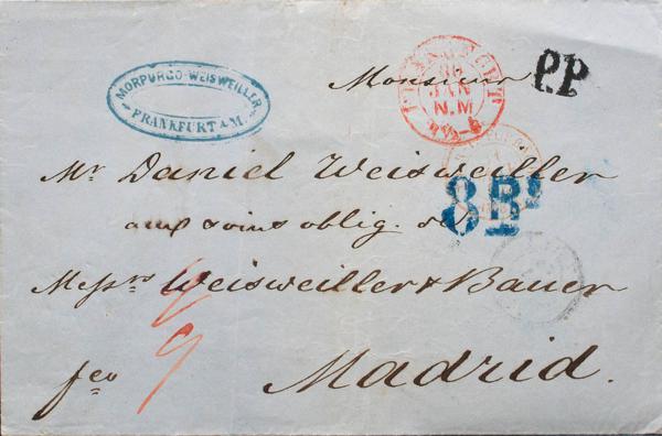 1851. BISCHOFESWERDA to REIMS (FRANCE). BISCHOFESWERDA dater and handwritten portage "8". MAGNIFICENT.
