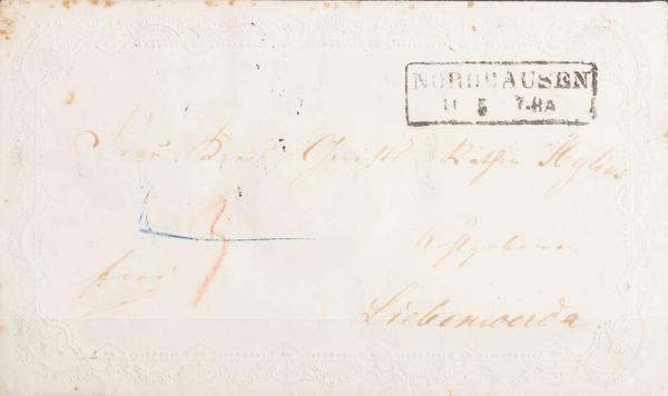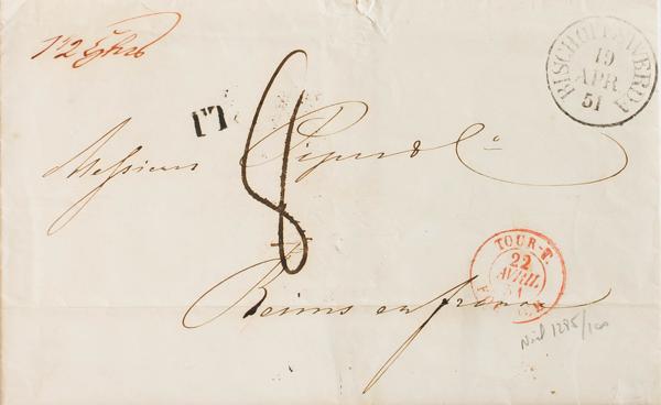 1850. CASTELVETRANO to SANTA NINFA. MAZARA and REAL SERVIZIO marks, both in red and rectangular SOTTINTENDENZA / DI MAZARA mark, in black. MAGNIFICENT.