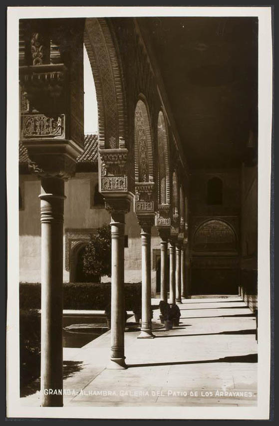 English GRENADE. The Alhambra. Gallery of the Patio de los Arrayanes.