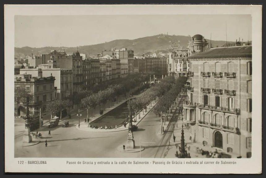 BARCELONA. Paseo de Gracia and entrance to Salmerón street.
