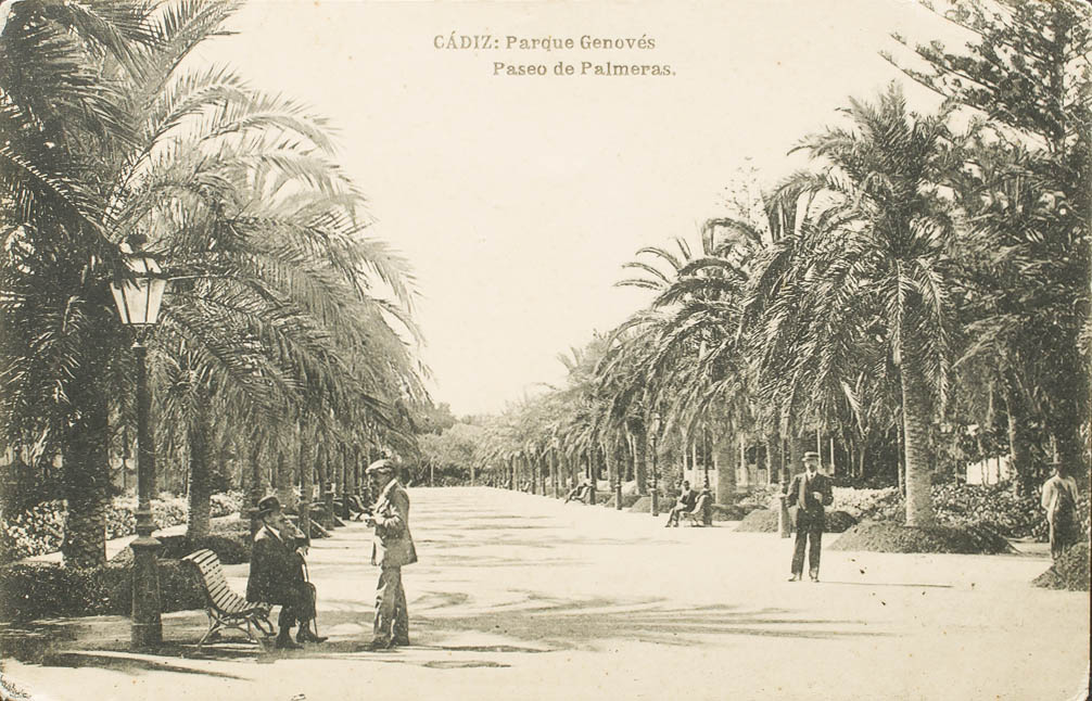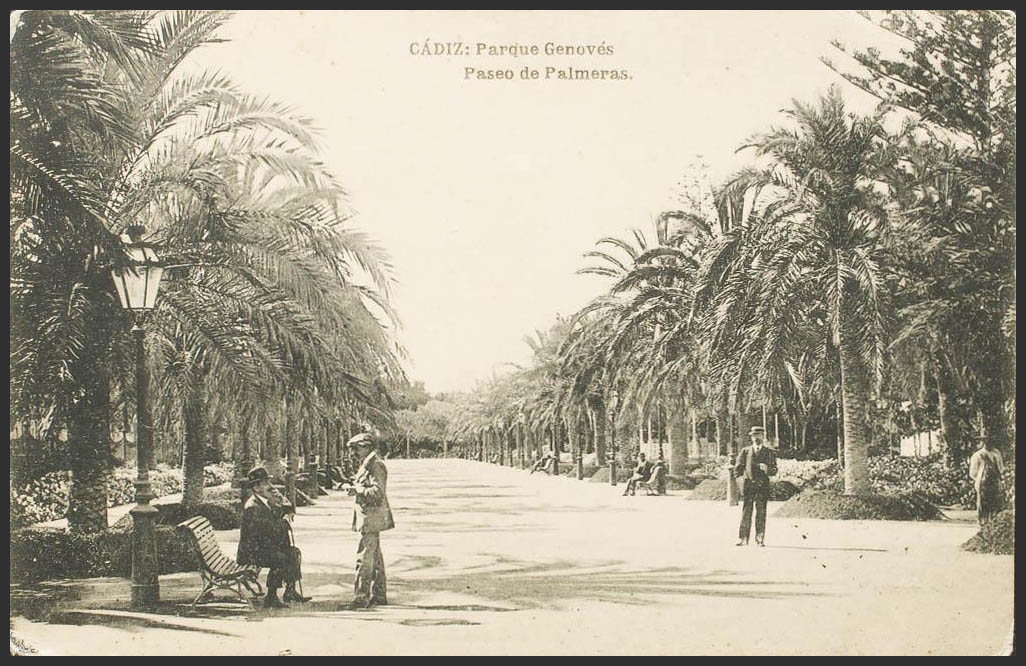 English CADIZ. Genovés Park, palm tree promenade.