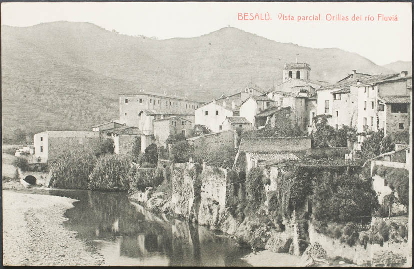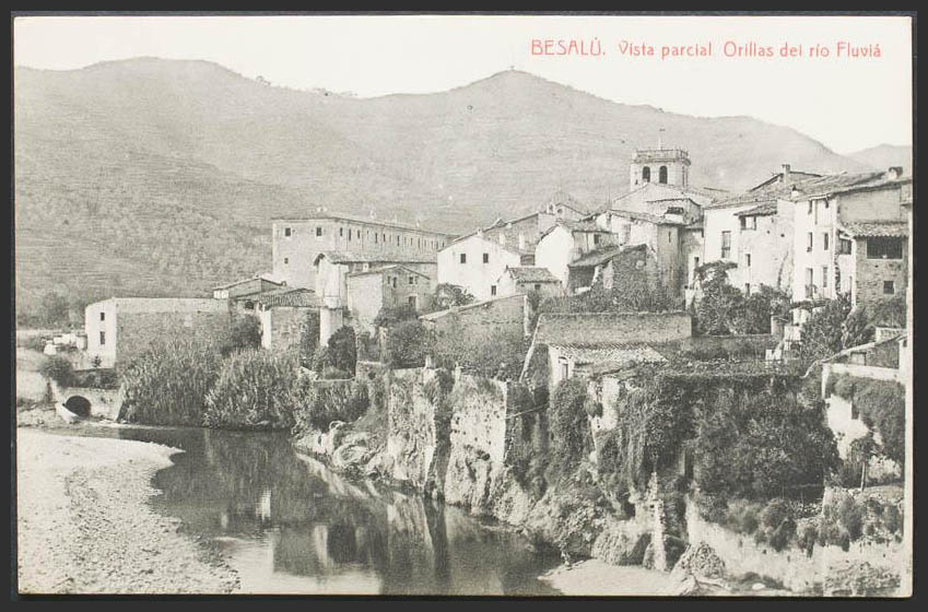 BESALU. Partial view. Banks of the Fluviá river.