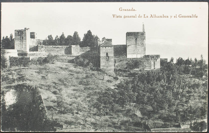 GRENADE. General View of the Alhambra and Generalife. Panoramic postcard.