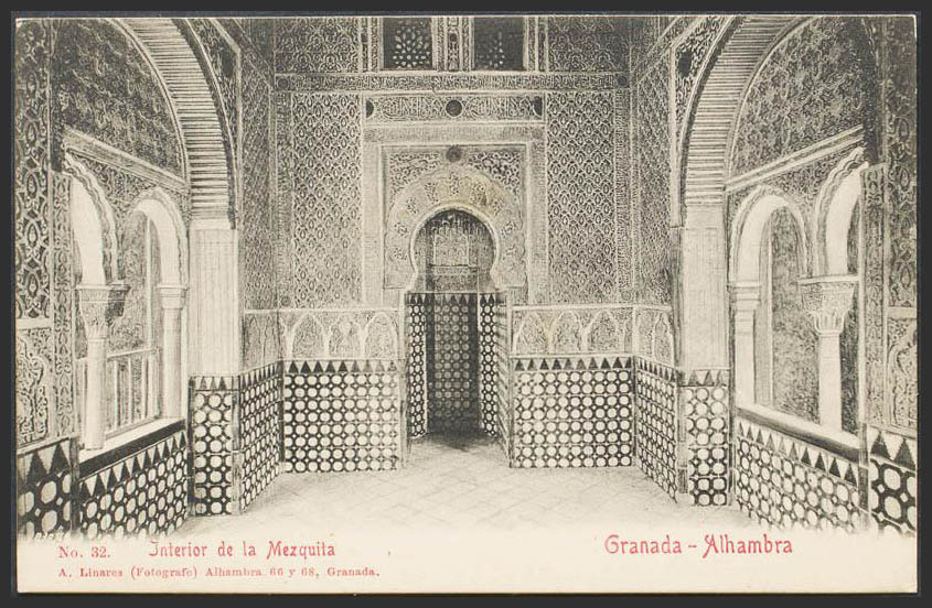 English GRENADE. The Alhambra. Interior of the Mosque.
