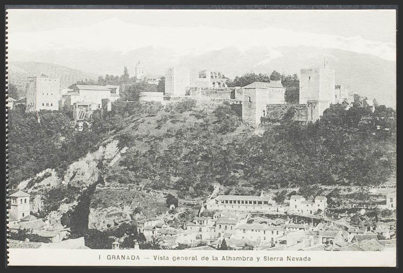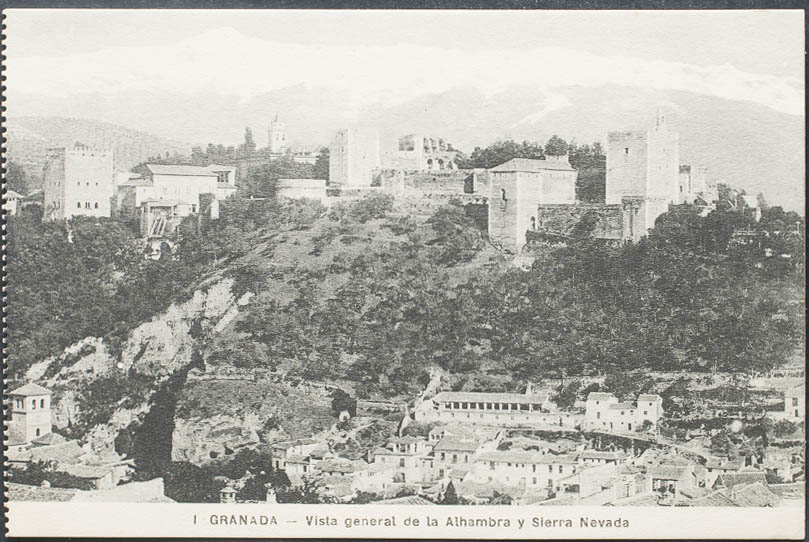 English GRENADE. The Alhambra. General view and Sierra Nevada.