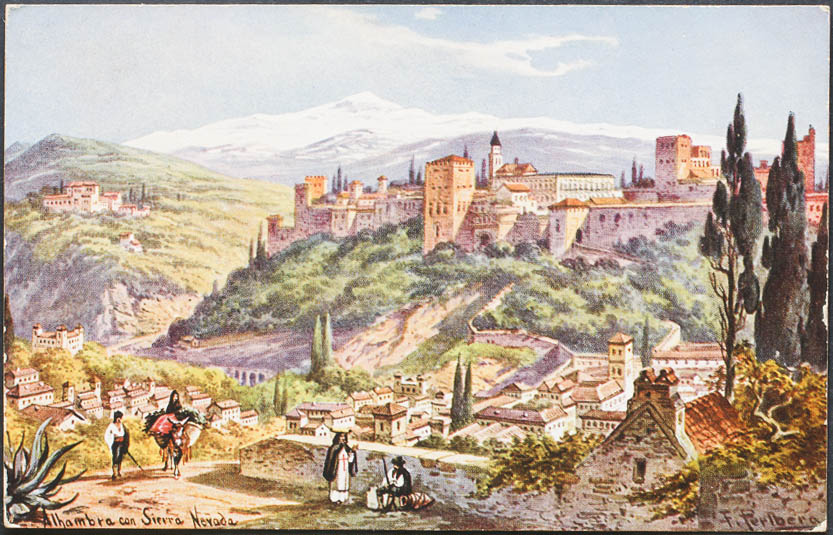 GRENADE. The Alhambra. General view and Sierra Nevada.