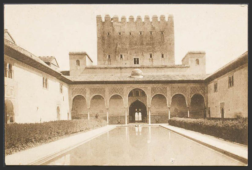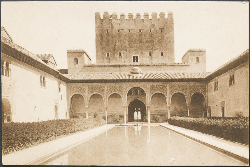 GRENADE. The Alhambra. Patio de los Arrayanes and Torre de Gomares.