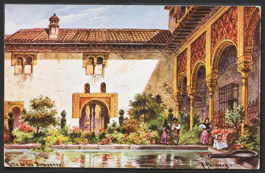 GRENADE. The Alhambra. Courtyard of the Myrtles. (Corners worn).