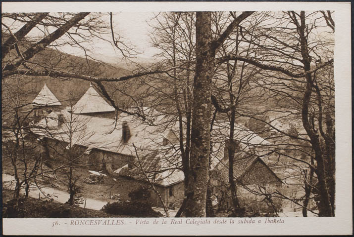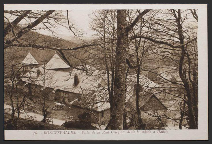 RONCESVALLES. View of the Real Collegiate Church from the climb to Ibañeta.
