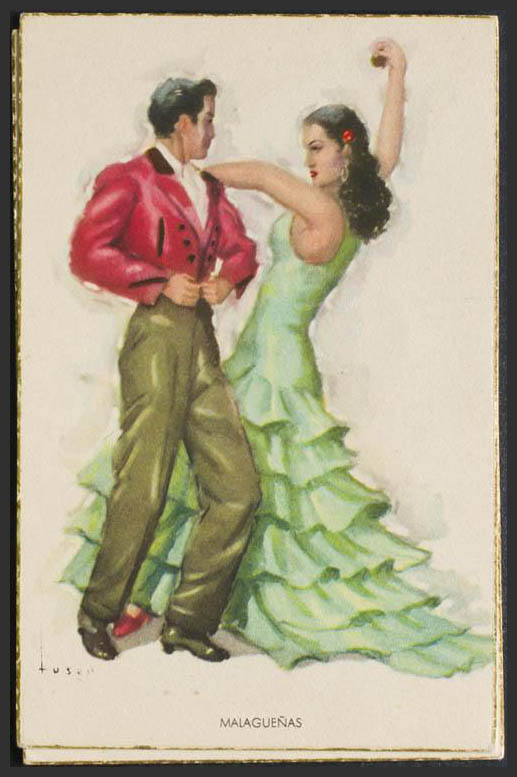 English Spanish folklore. Andalusian dances. 2 postcards.