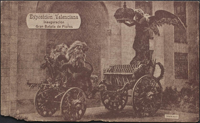 Valencian Exhibition. Inauguration of the Great Battle of Flowers (broken corner).