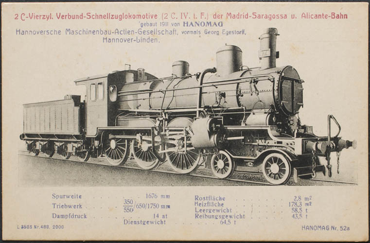 Hanomag. Spanish type 2 C Vierzyl locomotives.