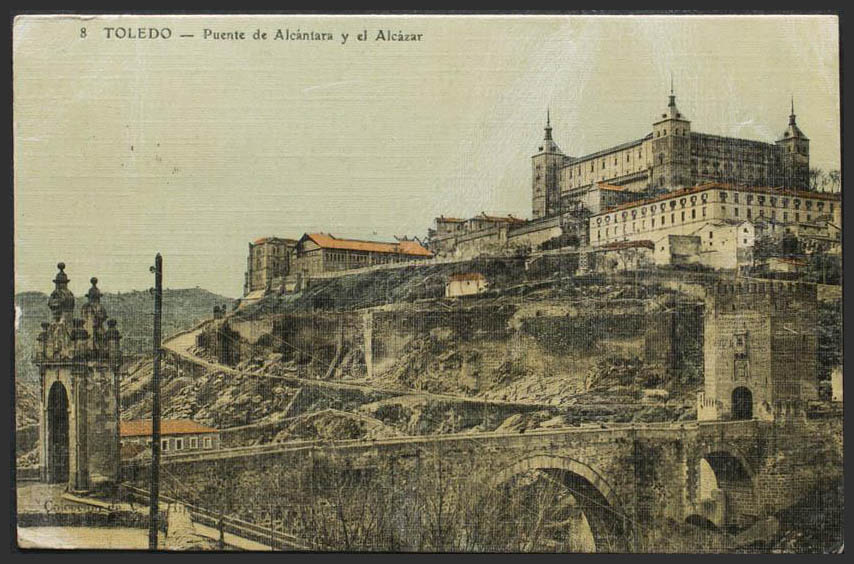 TOLEDO. Alcántara Bridge and Alcázar.
