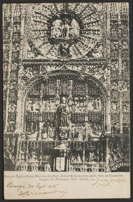 BURGOS. Church of San Nicolás de Bari. Altarpiece. Description in French.