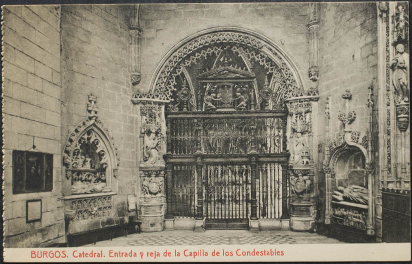 BURGOS. Cathedral. Entrance and gate of the Constables Chapel.