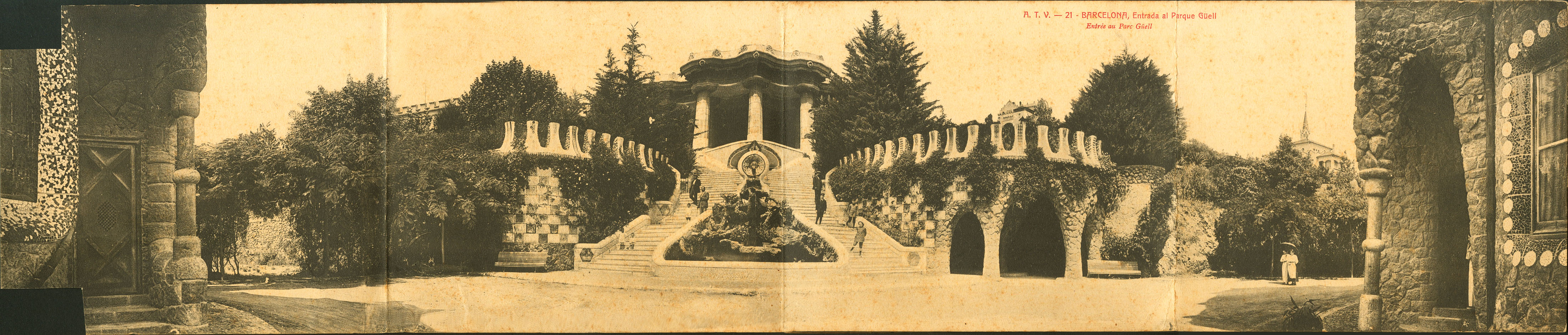 BAGoodELONA. Entrance to Park Güell. Large, quadruple postcard. (2 corners cut)