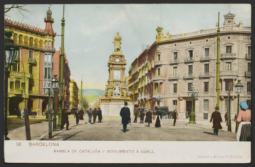 BARCELONA. Rambla de Cataluña and Monument to Güell.
