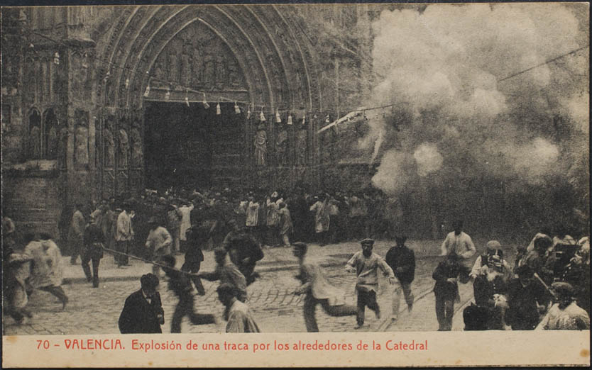 VALENCIA. Explosion of a fireworks around the Cathedral.