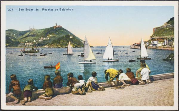SAINT SEBASTIAN. View from Miraconcha (drilled postcard).