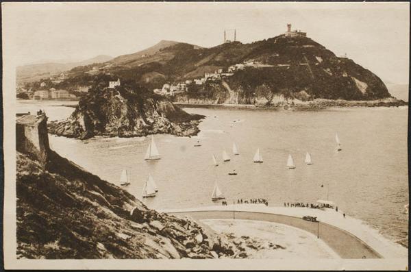 SAINT SEBASTIAN. La Concha Beach (drilled postcard).