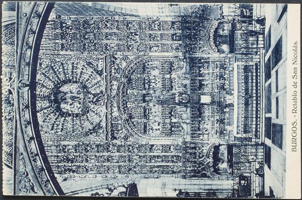 BURGOS. Church of San Nicolás de Bari. Altarpiece. Description in French.