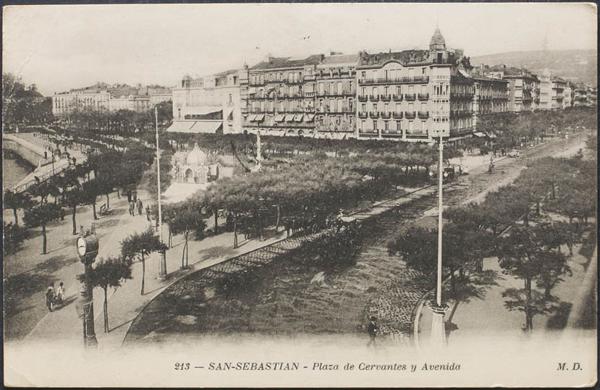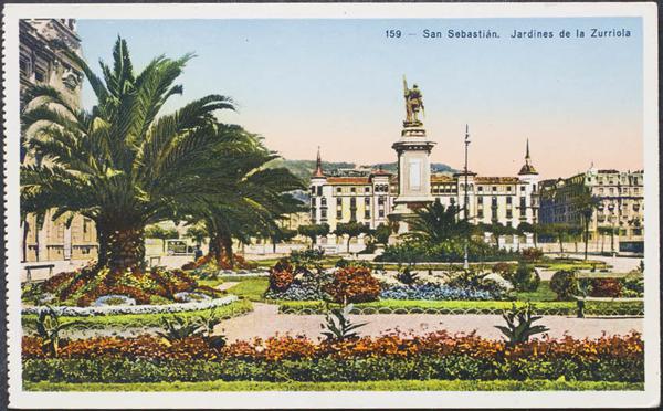 SAINT SEBASTIAN. Statue of Oquendo and Reina Victoria Theater.