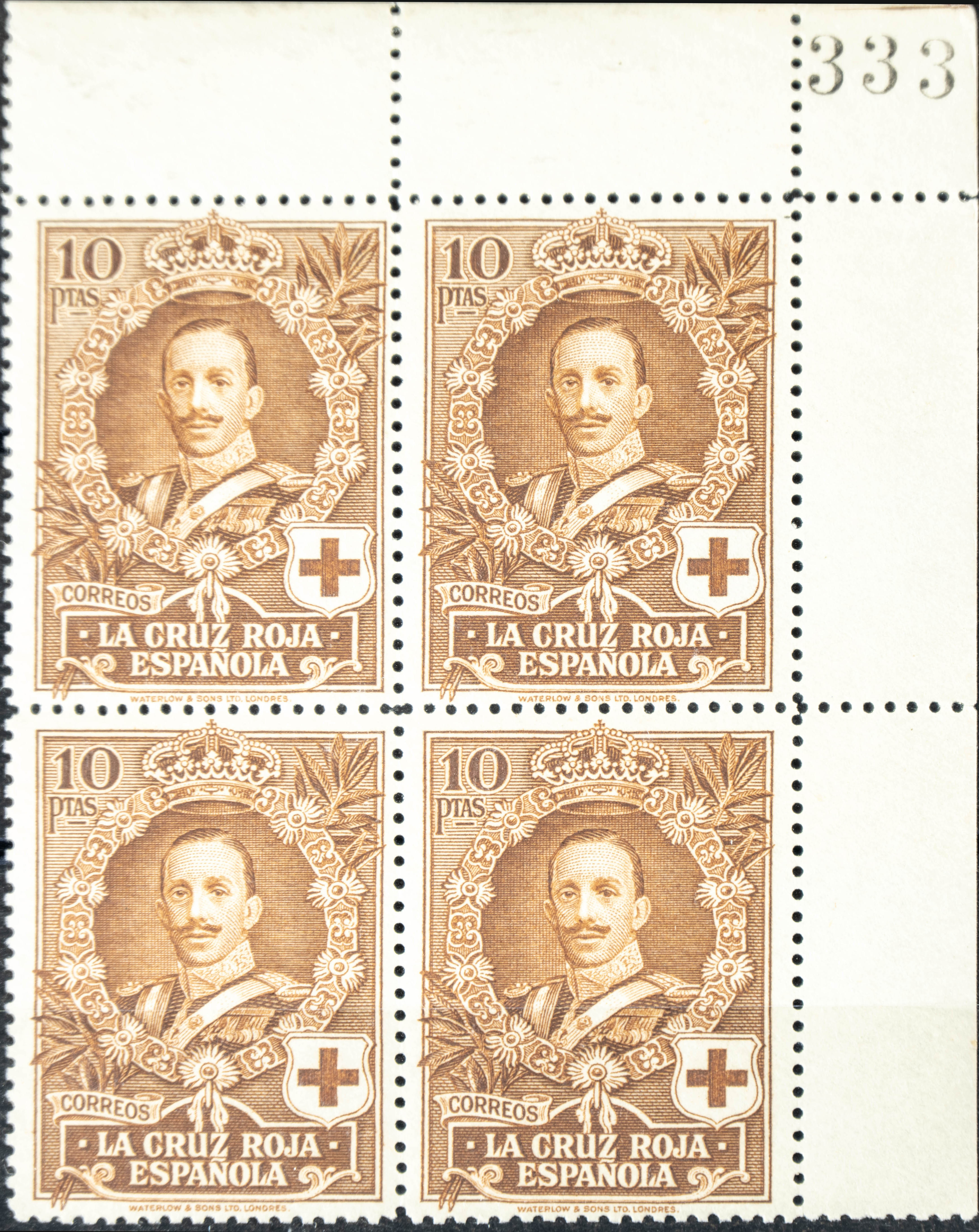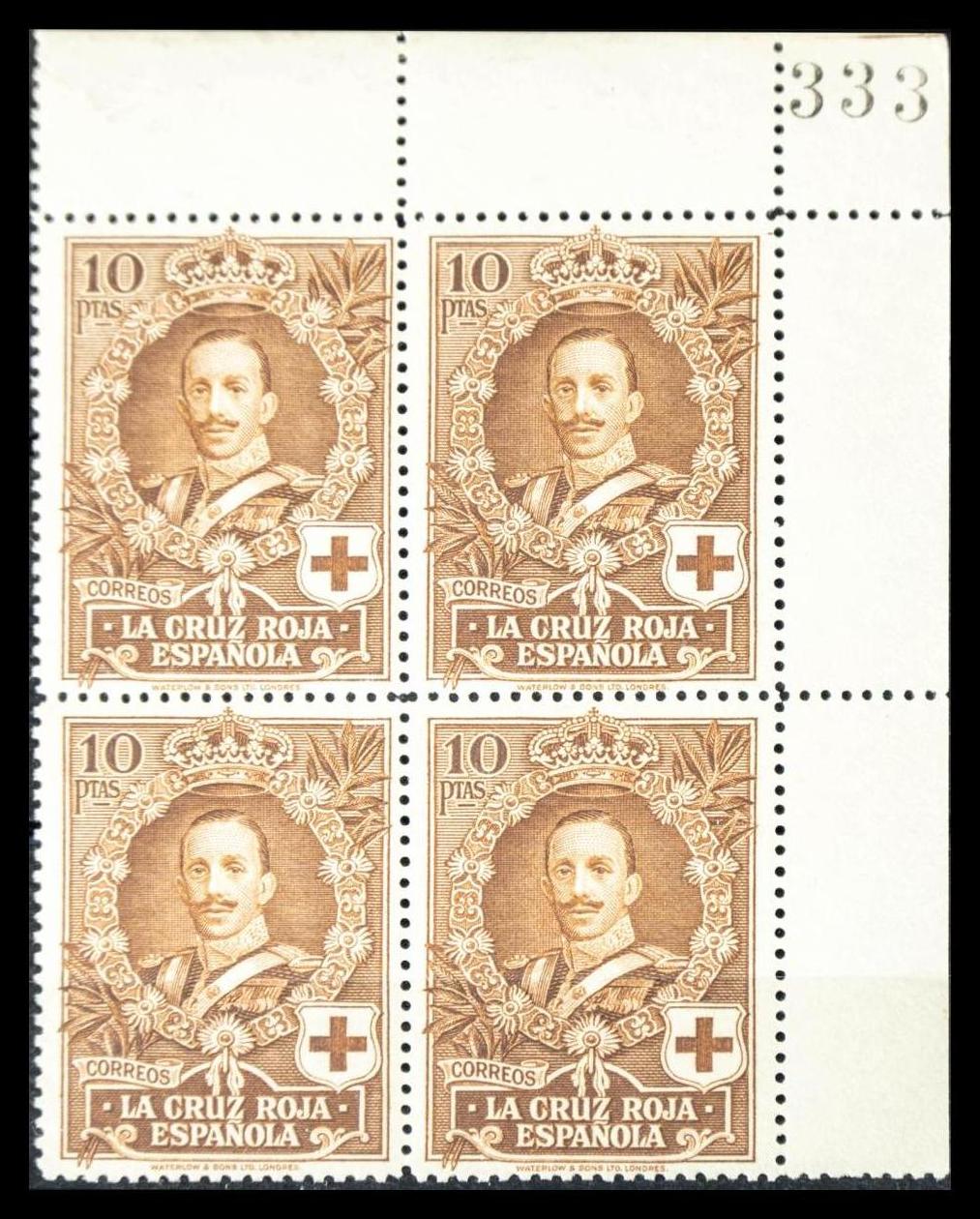 ★★ 337(4). 1926. 10 pts castaño, bloque de cuatro. MAGNIFICO. Edifil 2020: +44 Euros