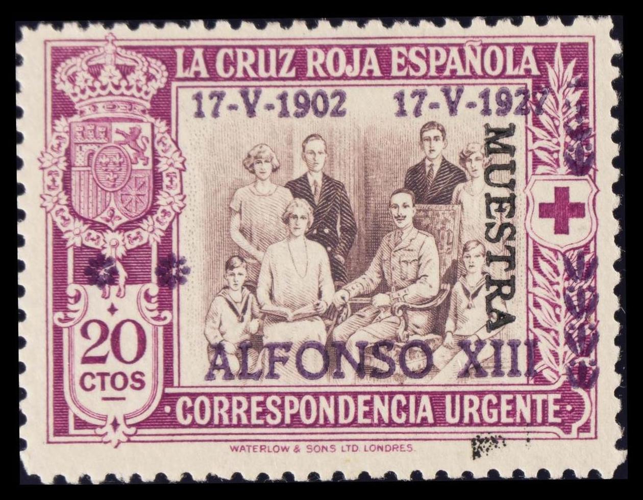 ★ 362M. 1927. 20 cts lila y castaño urgente. MUESTRA, en mayúsculas. MAGNIFICO. Edifil 2015: 58 Euros