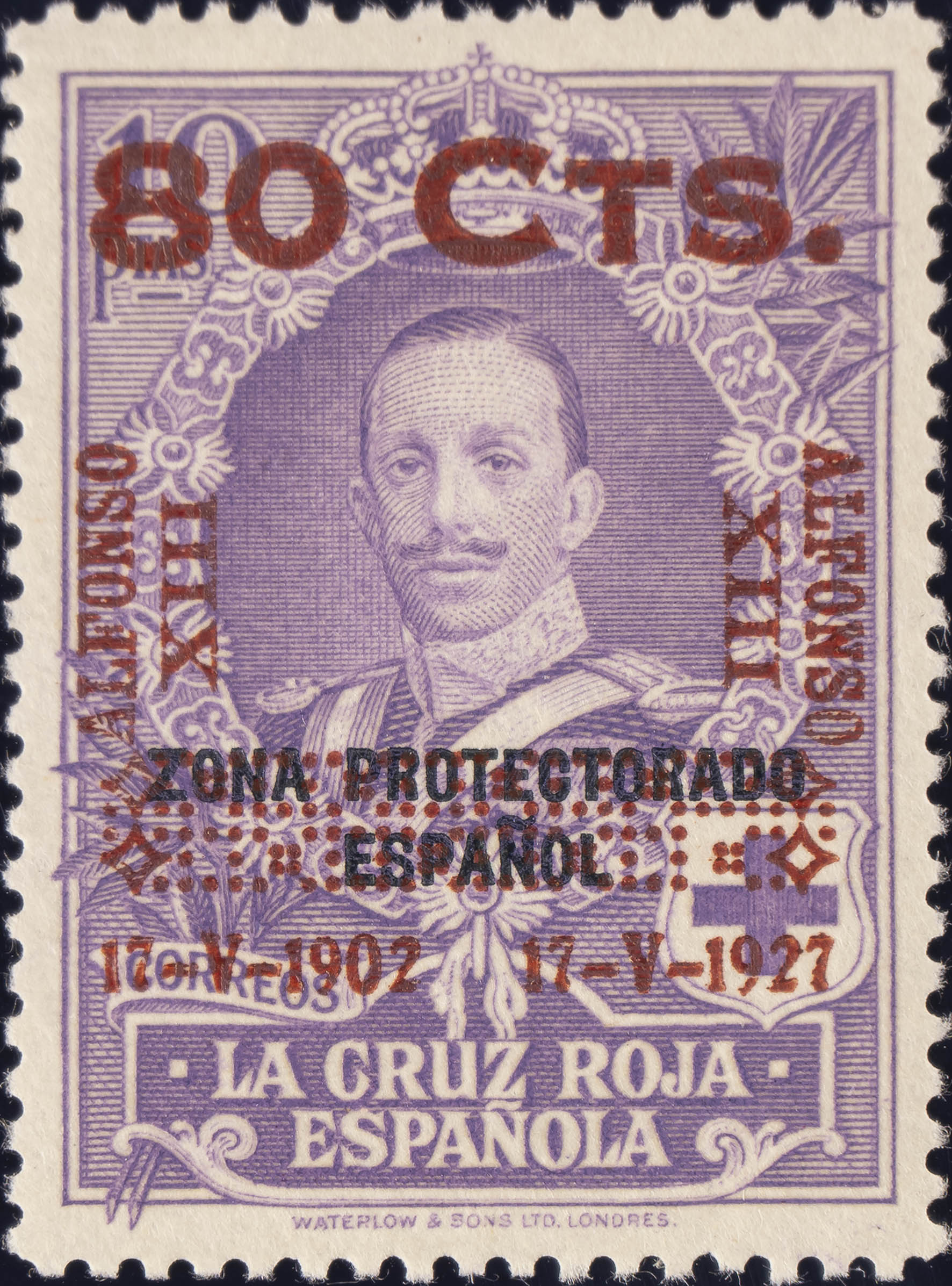 ★ 393. 1927. 80 cts sobre 10 pts violeta. MAGNIFICO. Edifil 2020: 39 Euros