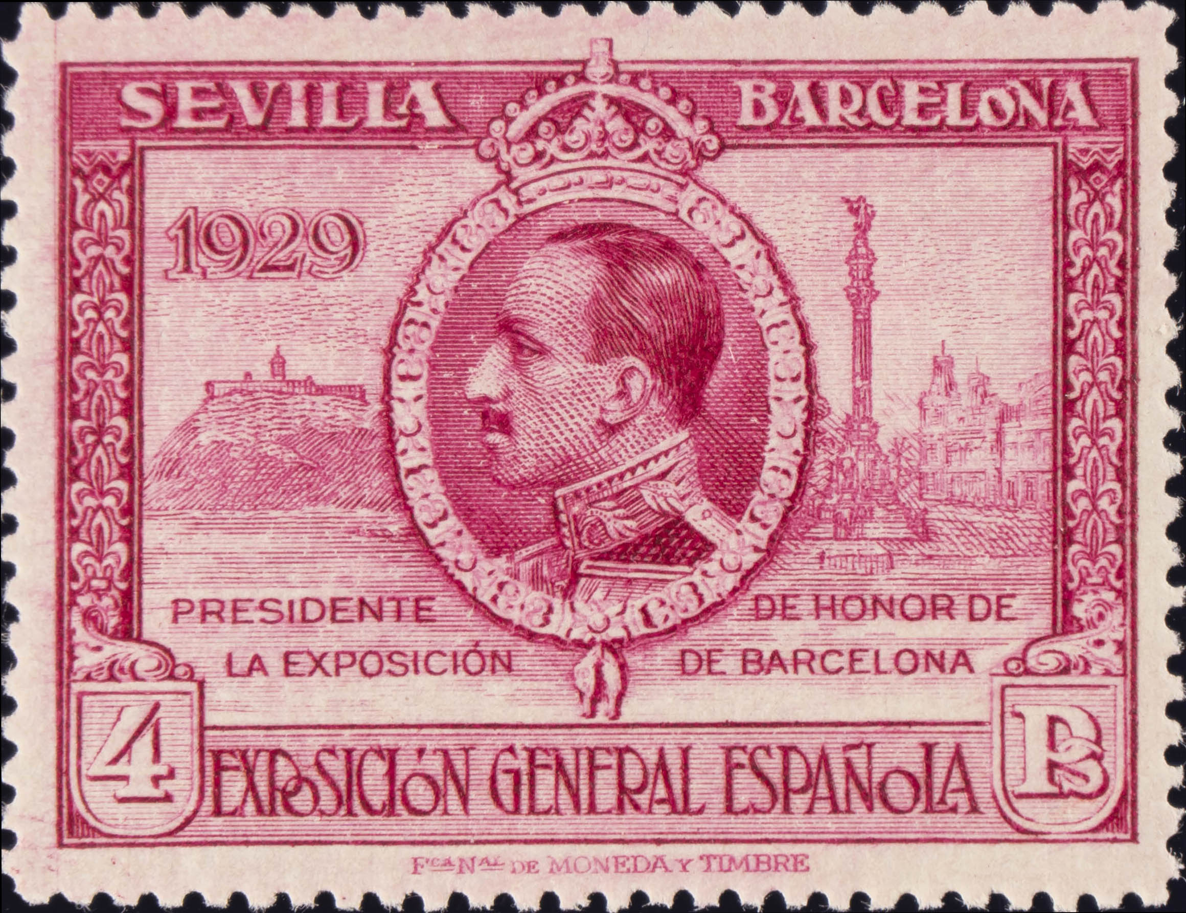 ★★ 445d. 1929. 4 pts lila rosa. DENTADO 14. MAGNIFICO. Edifil 2015: 77 Euros