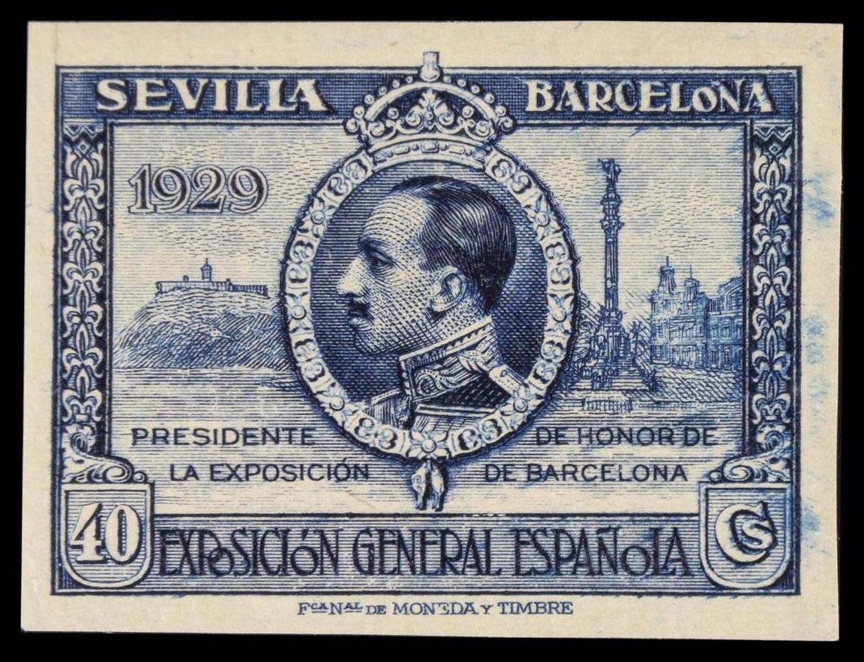 ★★ 442s. 1929. 40 cts azul. SIN DENTAR. MAGNIFICO. Edifil 2015: +165 Euros