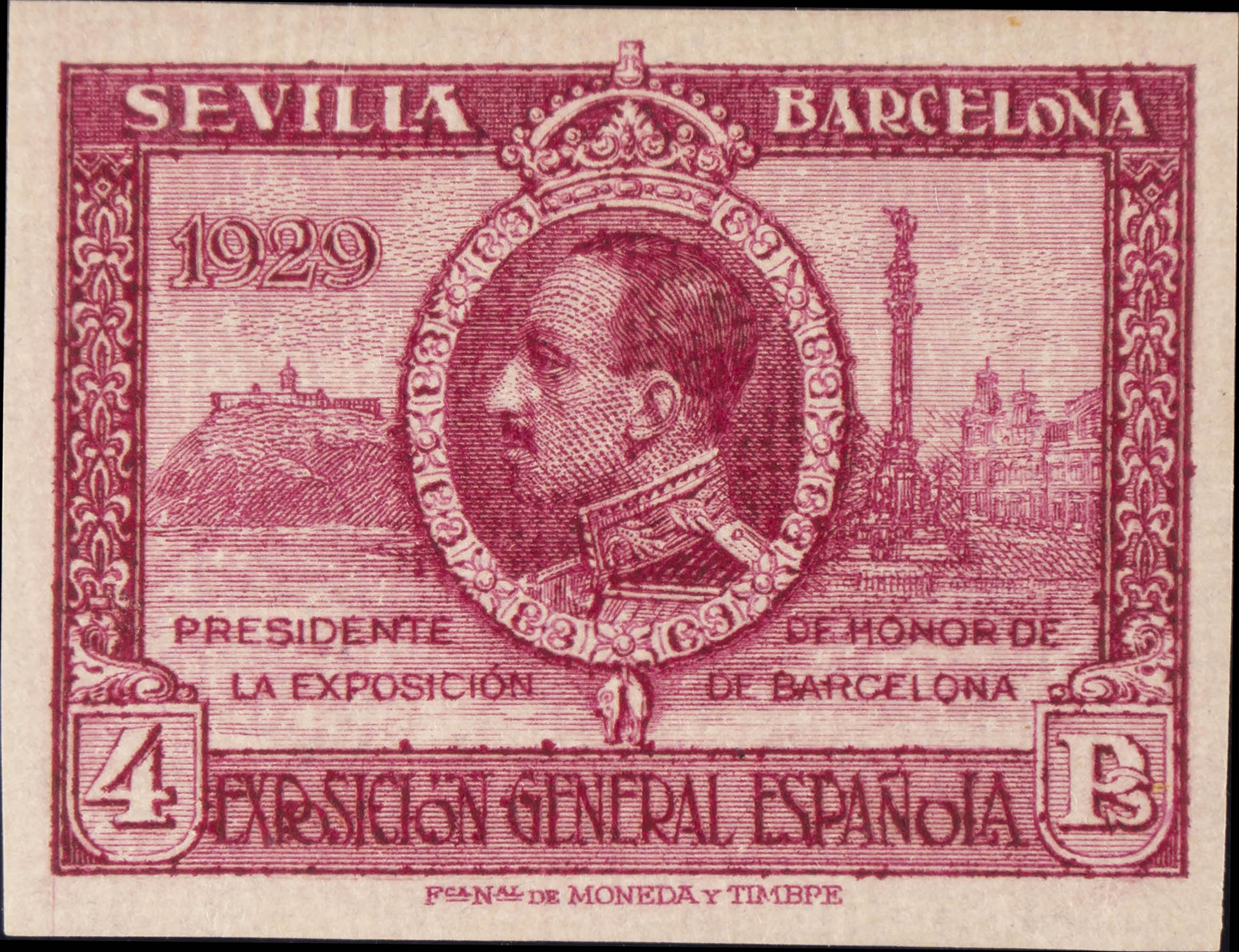 ★ 445s. 1929. 4 pts lila rosa. SIN DENTAR. MAGNIFICO. Edifil 2015: +165 Euros
