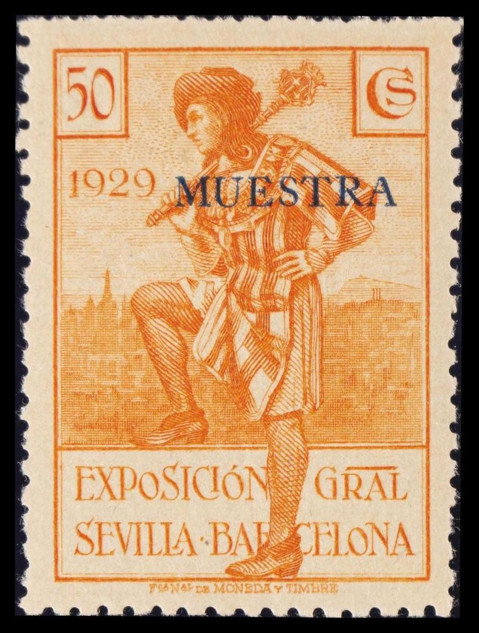 ★ 443Ma. 1929. 50 cts naranja. MUESTRA. MAGNIFICO. Edifil 2015: 37 Euros