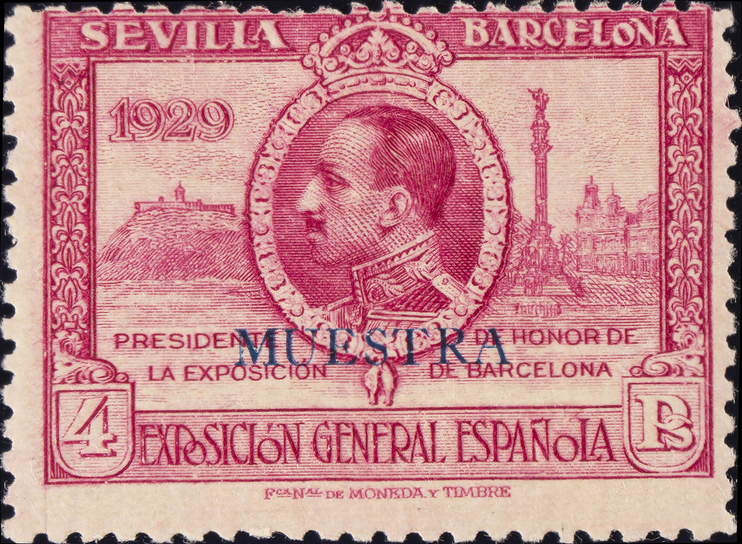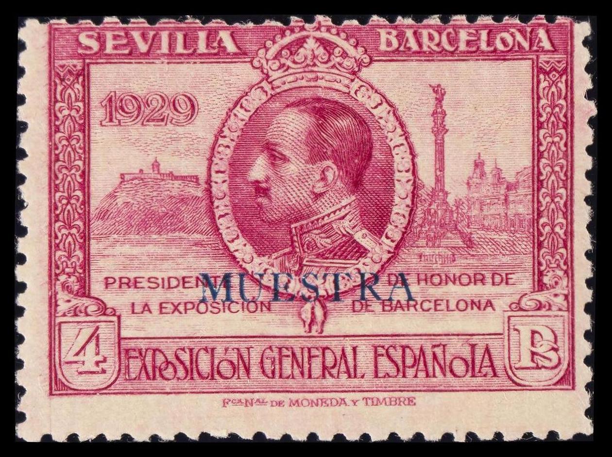★ 445Ma. 1929. 4 pts lila rosa (centraje de la emisión). MUESTRA. BONITO. Edifil 2015: 37 Euros