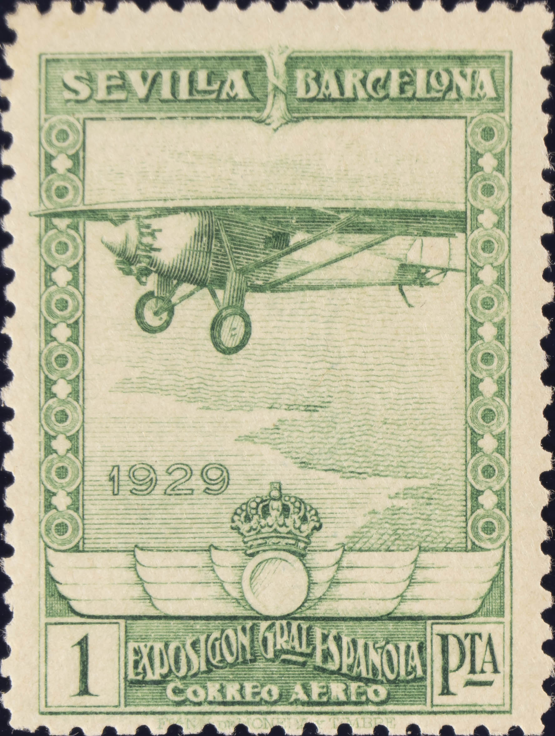 ★★ 452. 1929. 1 pts verde amarillo. MAGNIFICO. Edifil 2020: 100 Euros