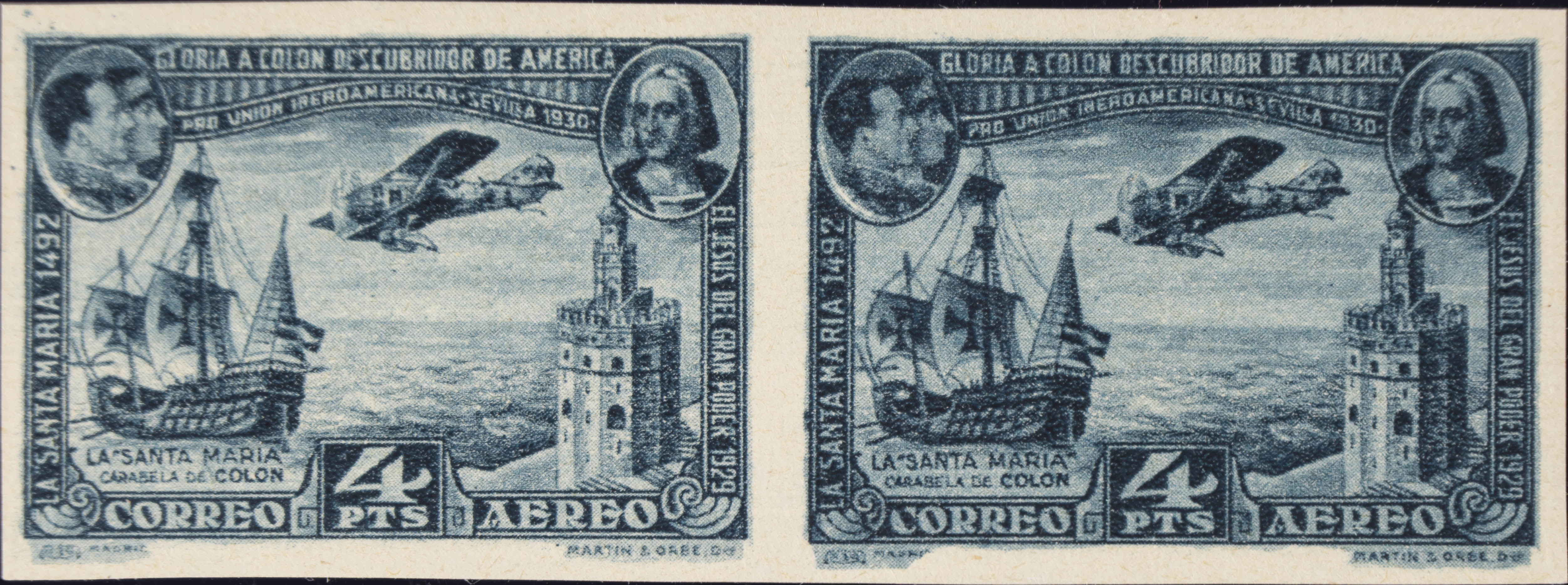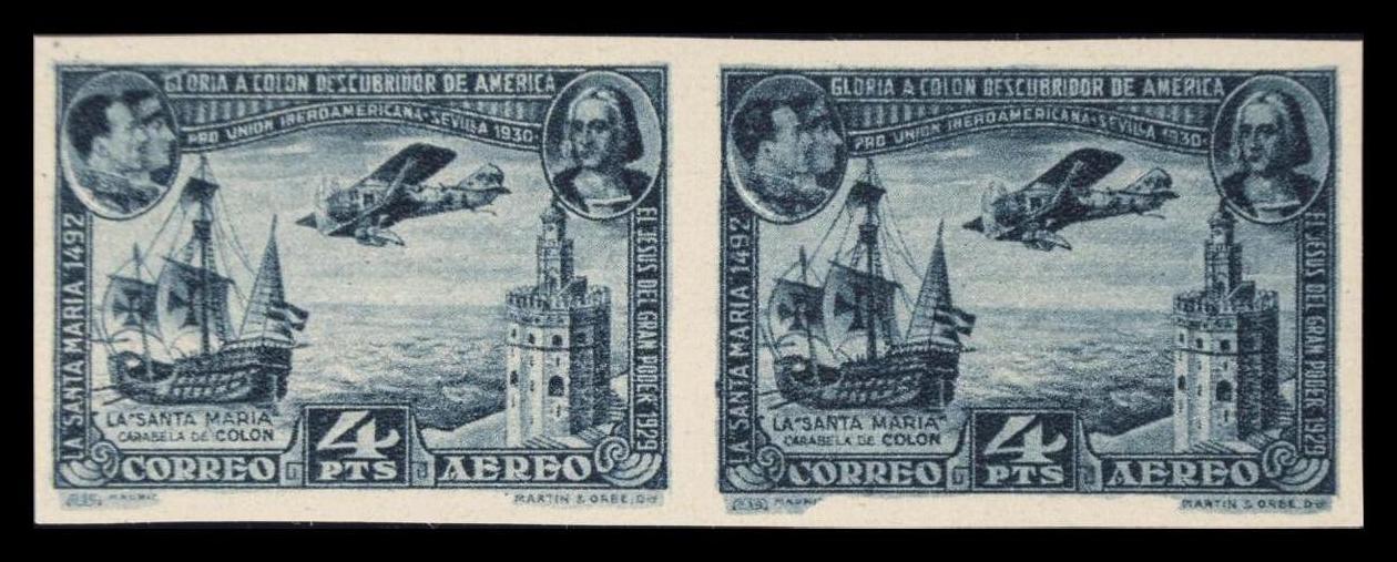 ★★ 591s(2). 1930. 4 pts azul, pareja. SIN DENTAR. MAGNIFICA. Edifil 2015: 64 Euros