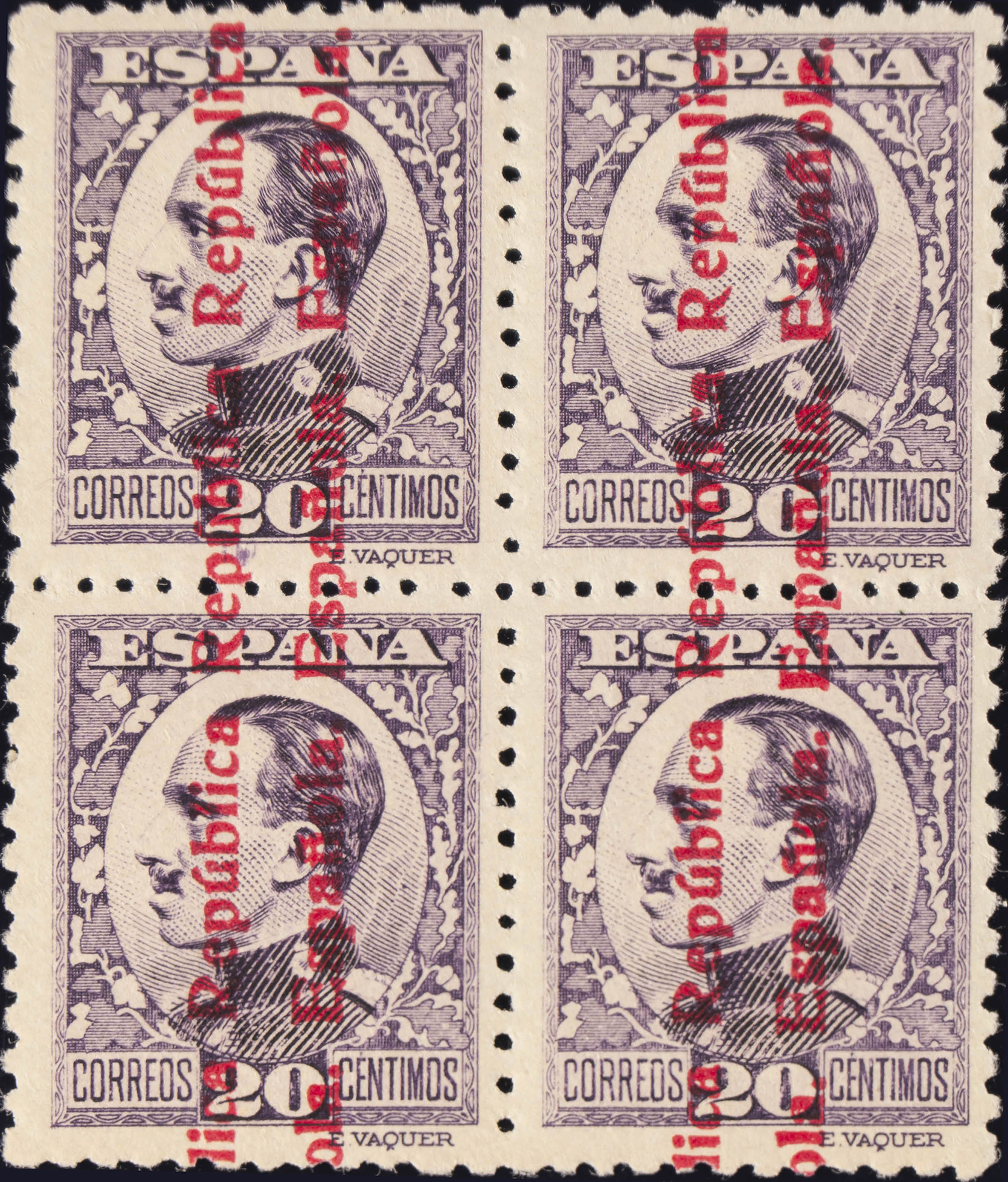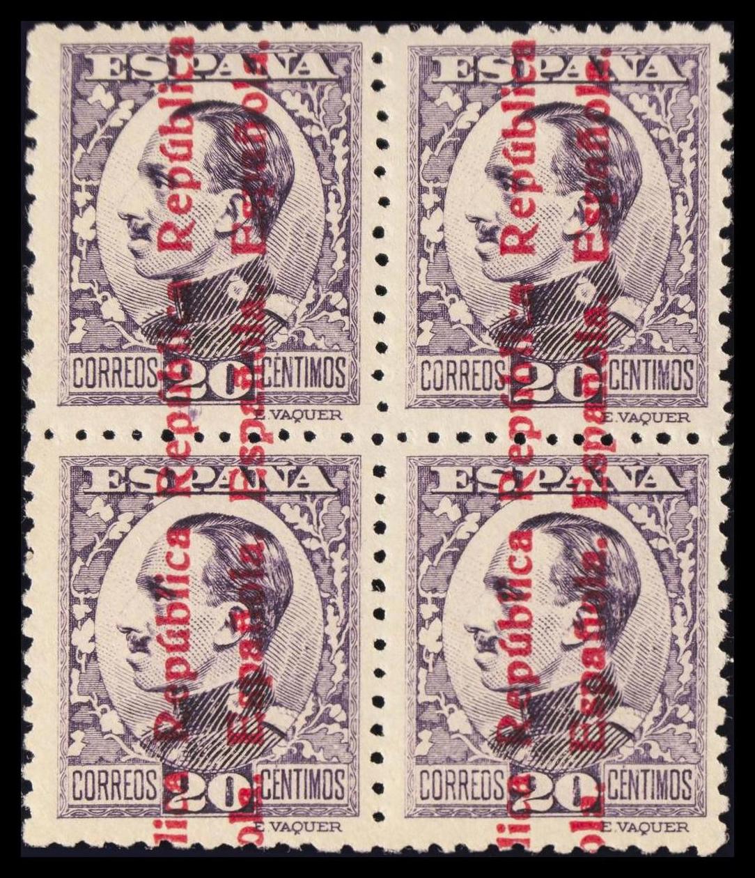 ★★ 597(4). 1931. 20 cts violeta, bloque de cuatro. MAGNIFICO. Edifil 2020: +16 Euros
