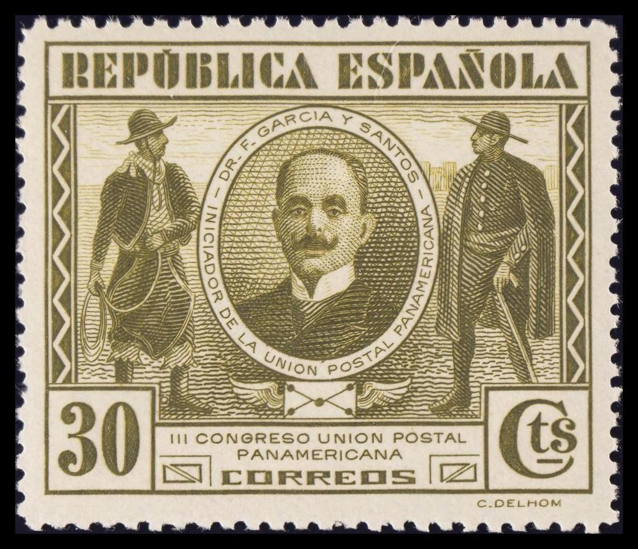 ★★ 608cc. 1931. 30 cts verde oliva. CAMBIO DE COLOR. MAGNIFICO. Edifil 2015: 8 Euros