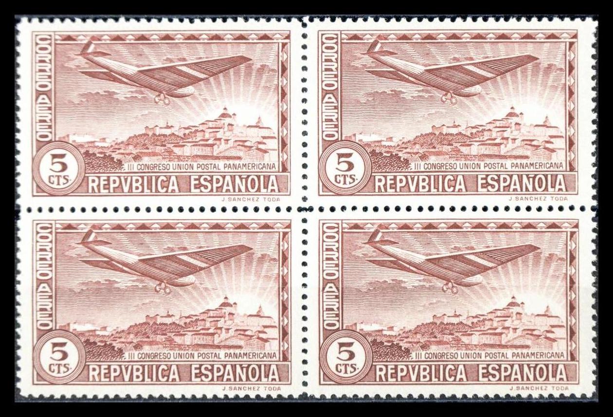 ★★ 614(4). 1931. 5 cts castaño violeta, bloque de cuatro. MAGNIFICO. Edifil 2020: +1,4 Euros