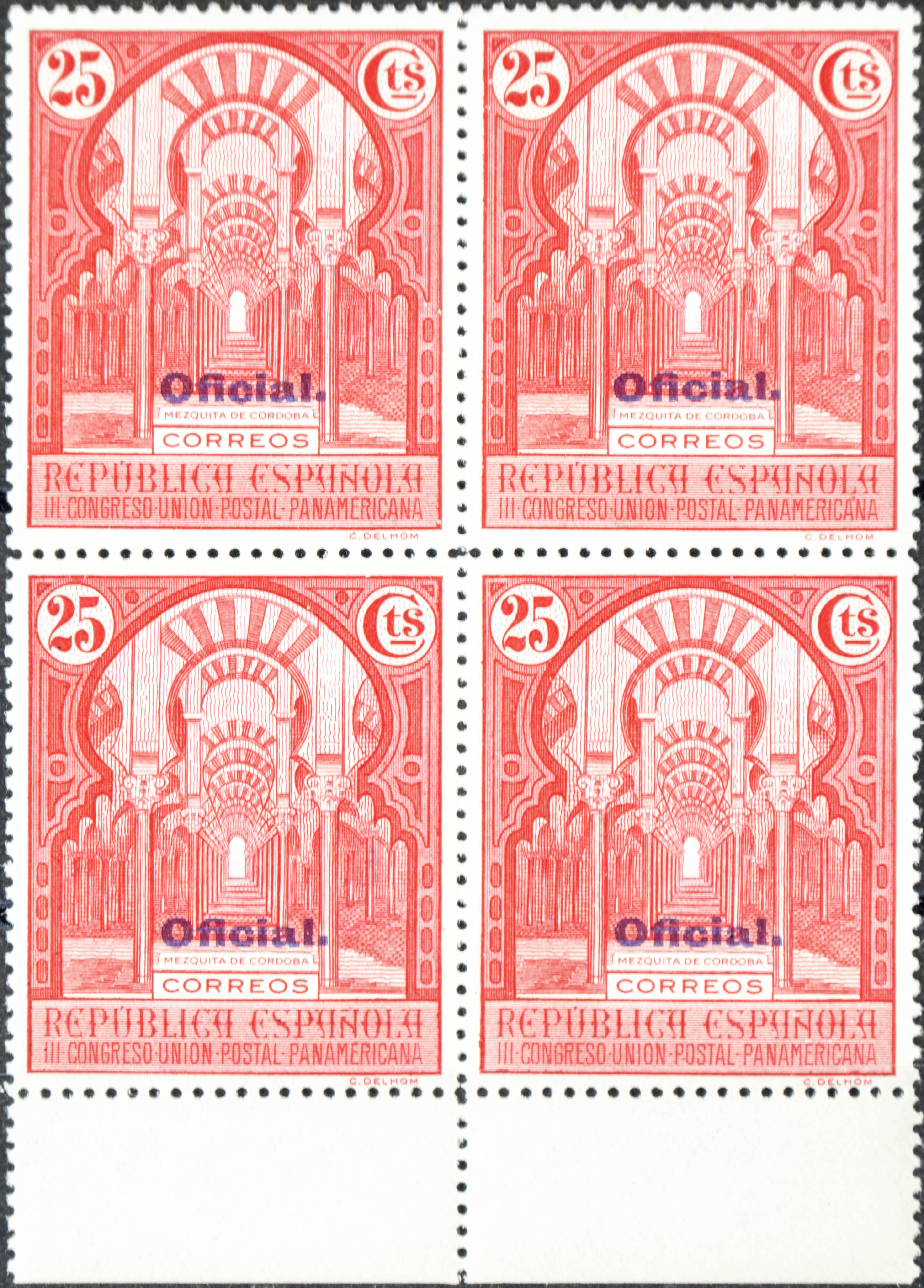 ★★ 623(4). 1931. 25 cts carmÃn rosa, bloque de cuatro. MAGNIFICO. Edifil 2020: +2,4 Euros