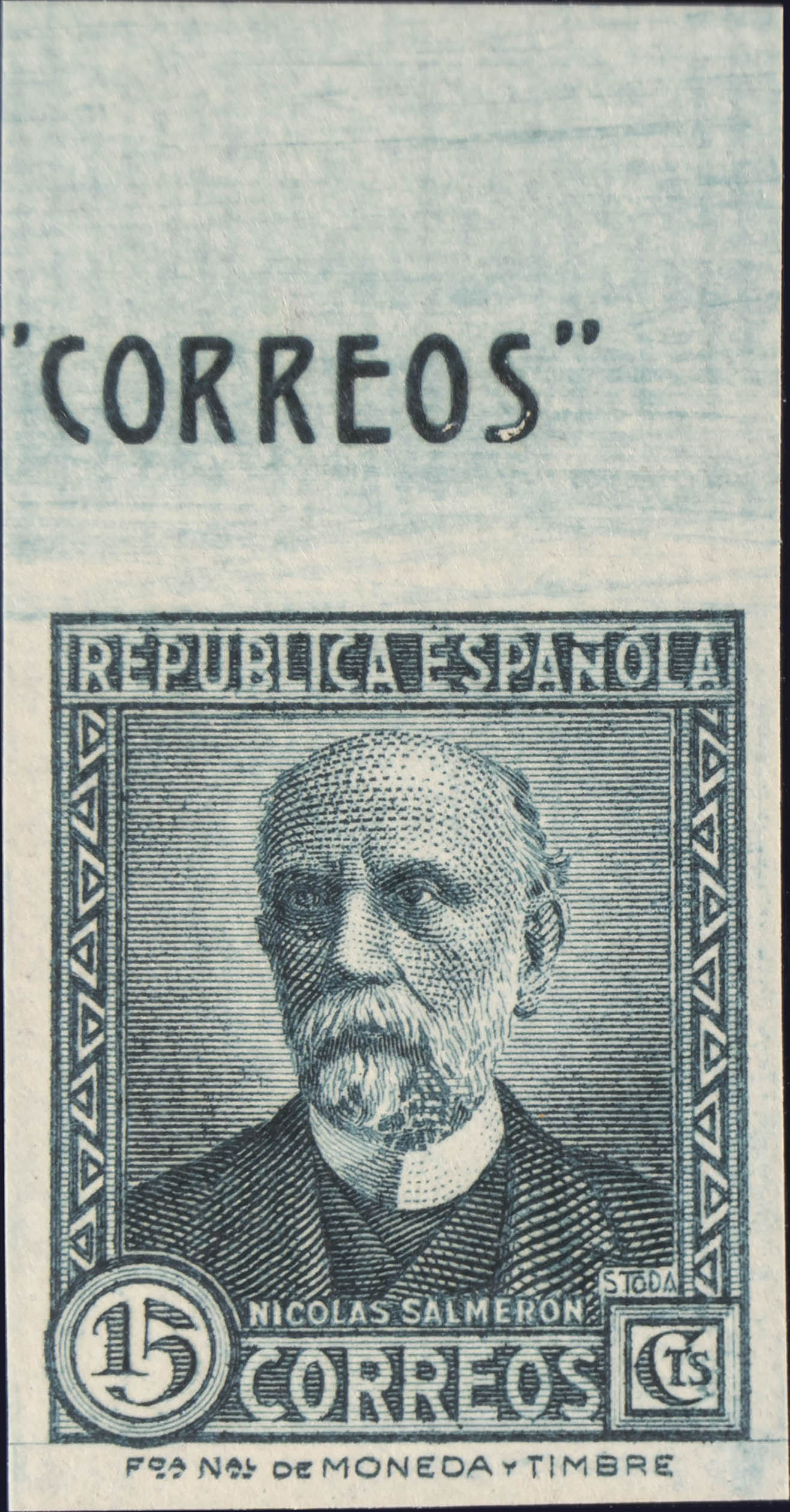 ★★ 665s. 1932. 15 cts verde gris, borde de hoja. SIN DENTAR. MAGNIFICO. Edifil 2020: +12,5 Euros