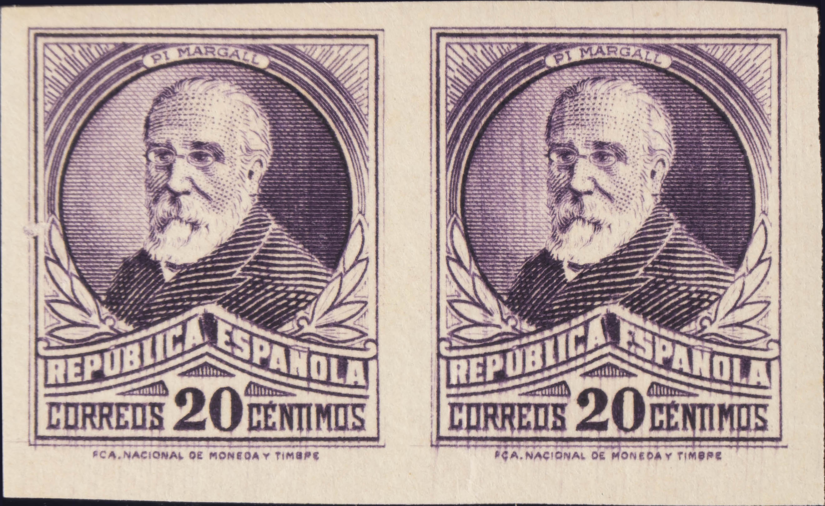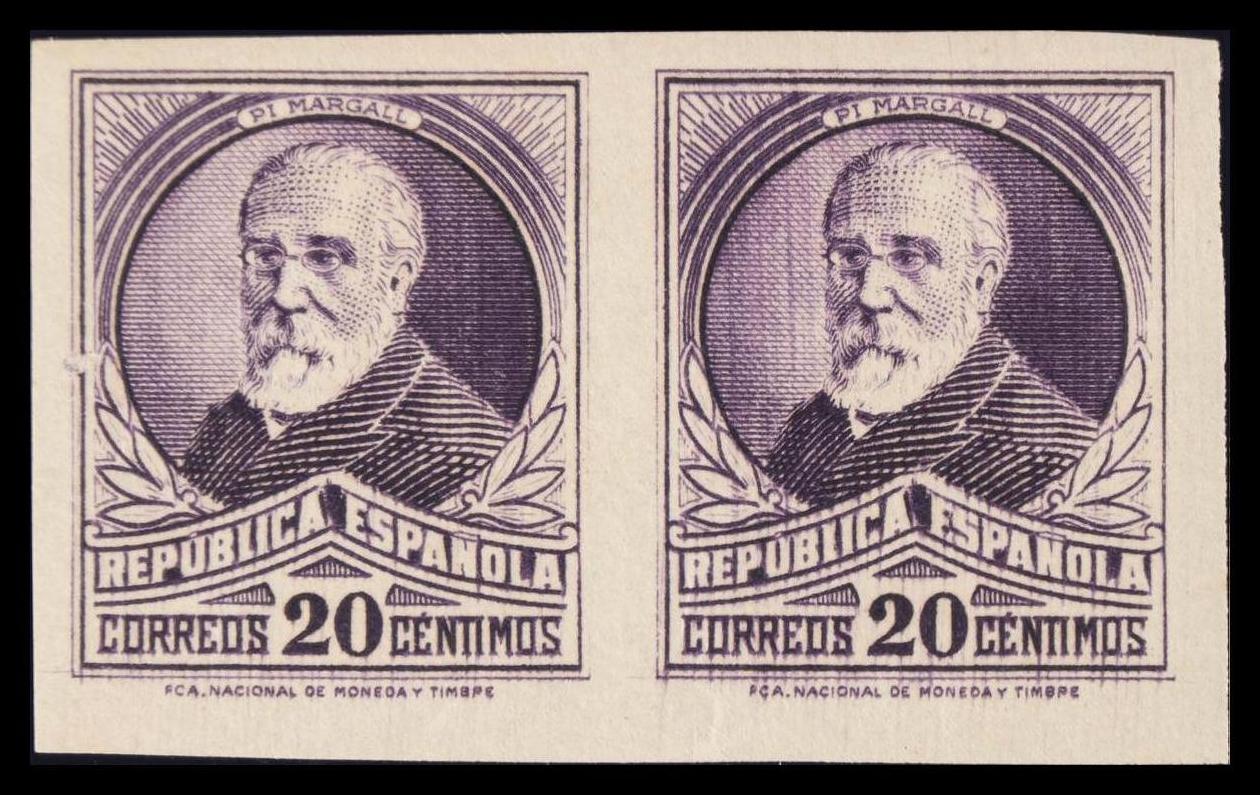 ★ 666s(2). 1932. 20 cts violeta, pareja. SIN DENTAR. MAGNIFICA. Edifil 2020: +25 Euros
