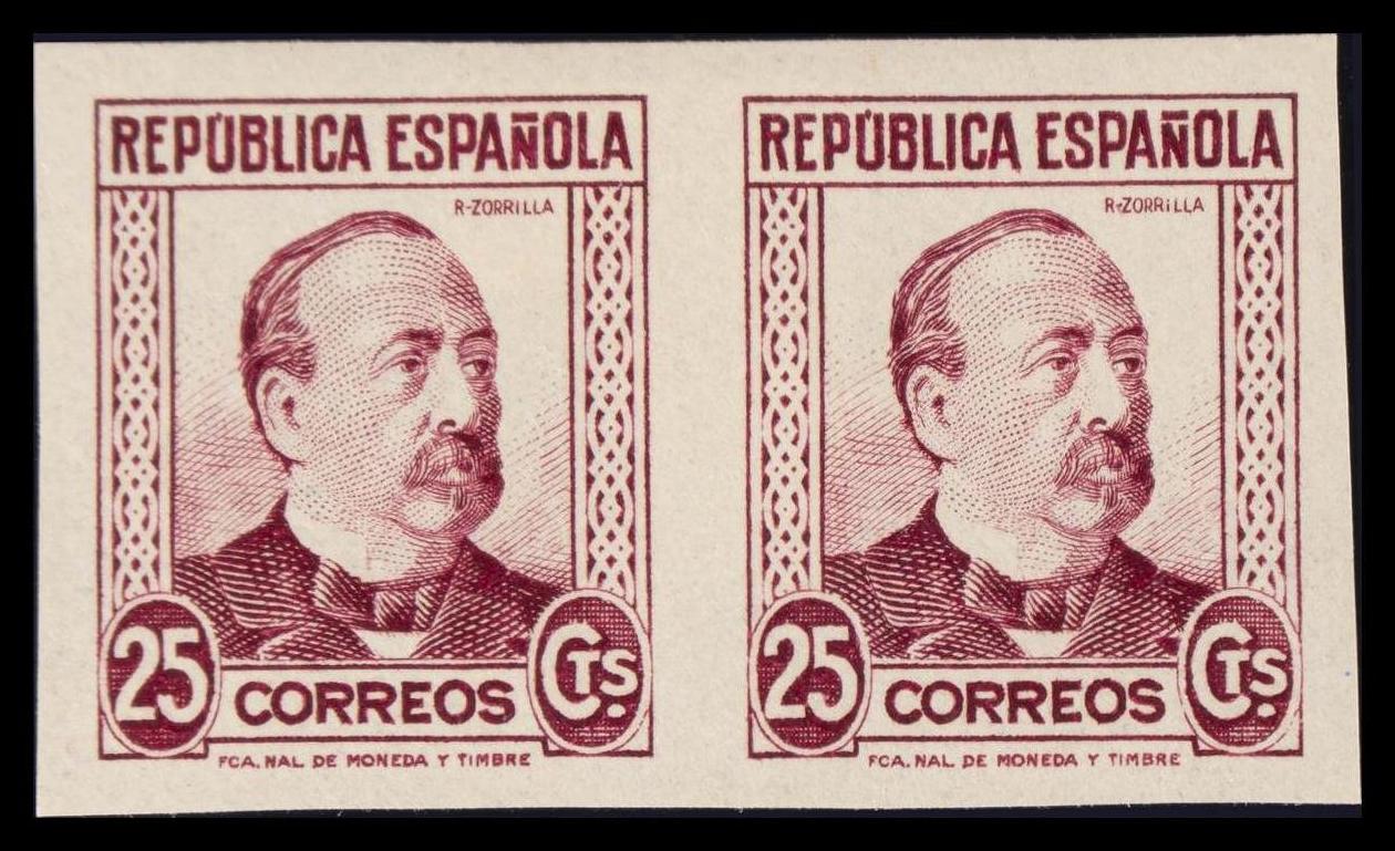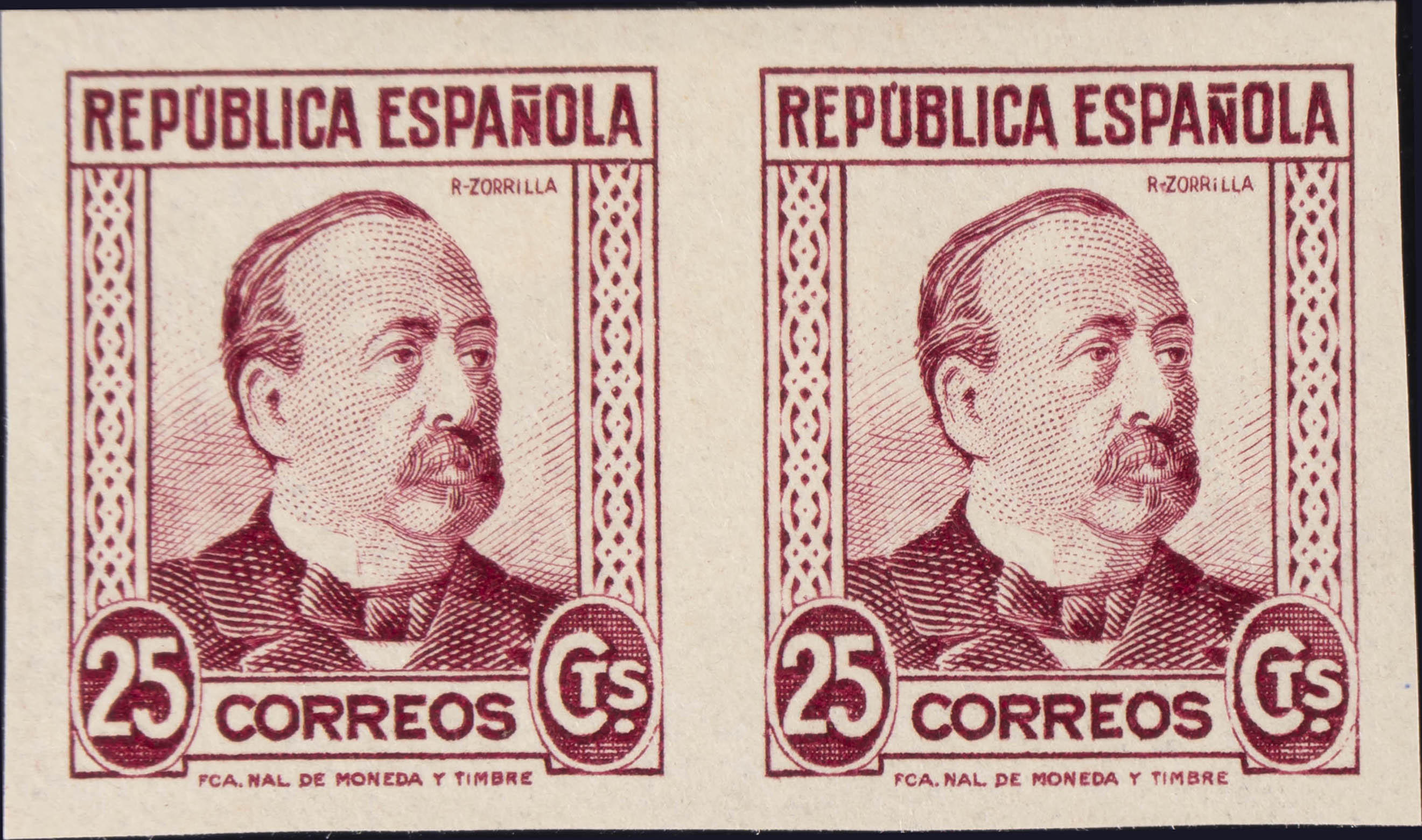 ★ 685s(2). 1933. 25 cts carmín, pareja. SIN DENTAR. MAGNIFICO. Edifil 2020: +22 Euros