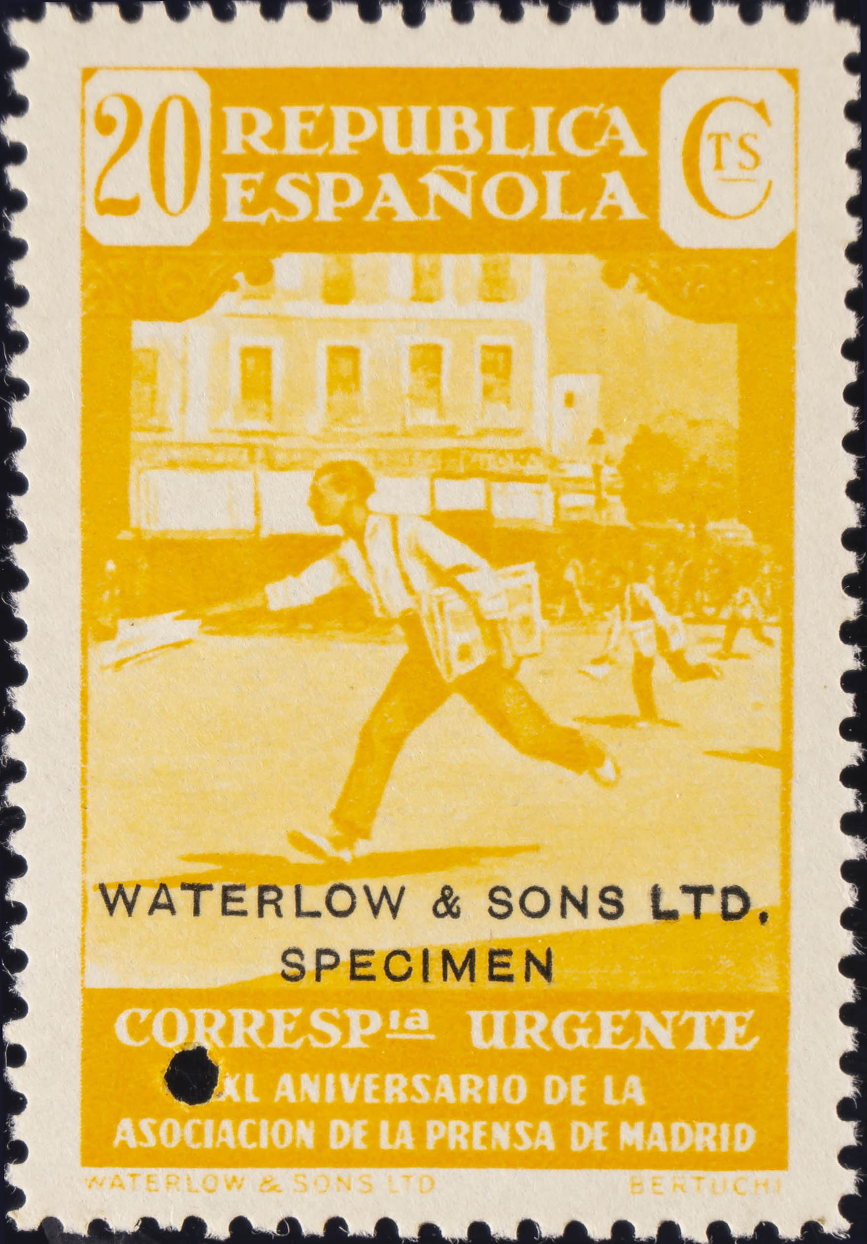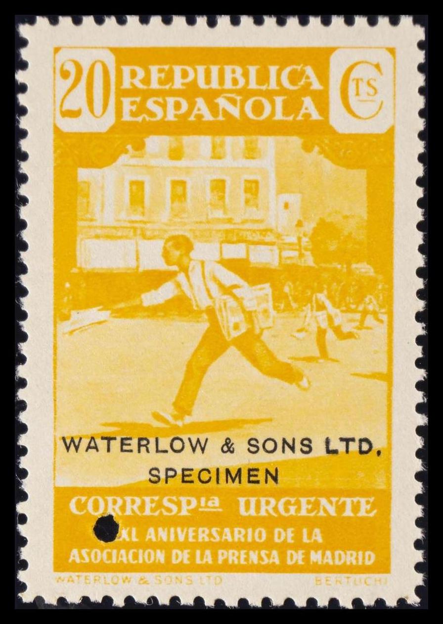★★ 710MTcc. 1936. 20 cts amarillo. Sobrecarga WATERLOW AND SONS / SPECIMEN. MAGNIFICO. Edifil 2015: +35 Euros