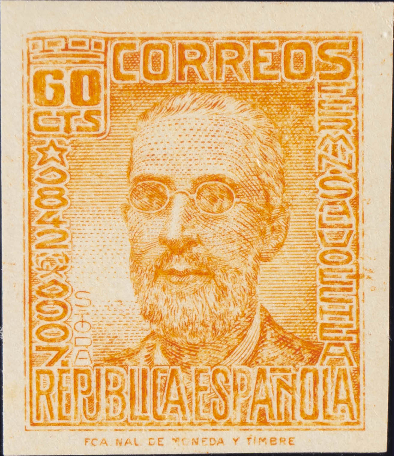 ★★ 740s. 1938. 60 cts naranja. SIN DENTAR. MAGNIFICO. Edifil 2020: 53 Euros