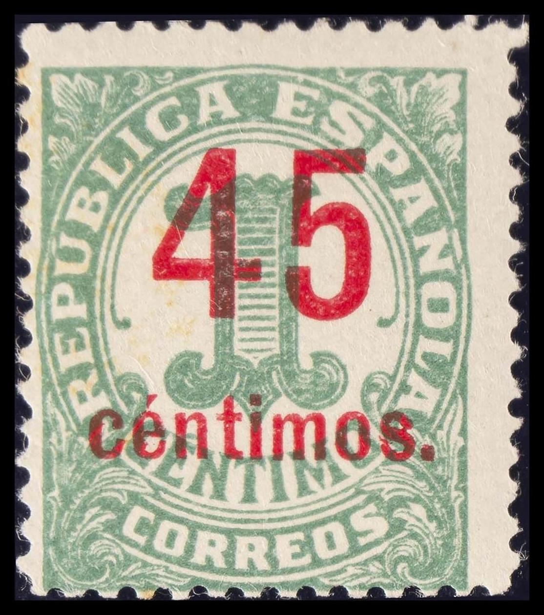 ★★ 742hc. 1938. 45 cts sobre 1 cts verde. SOBRECARGA CALCADA. MAGNIFICO. Edifil 2015: +16,5 Euros