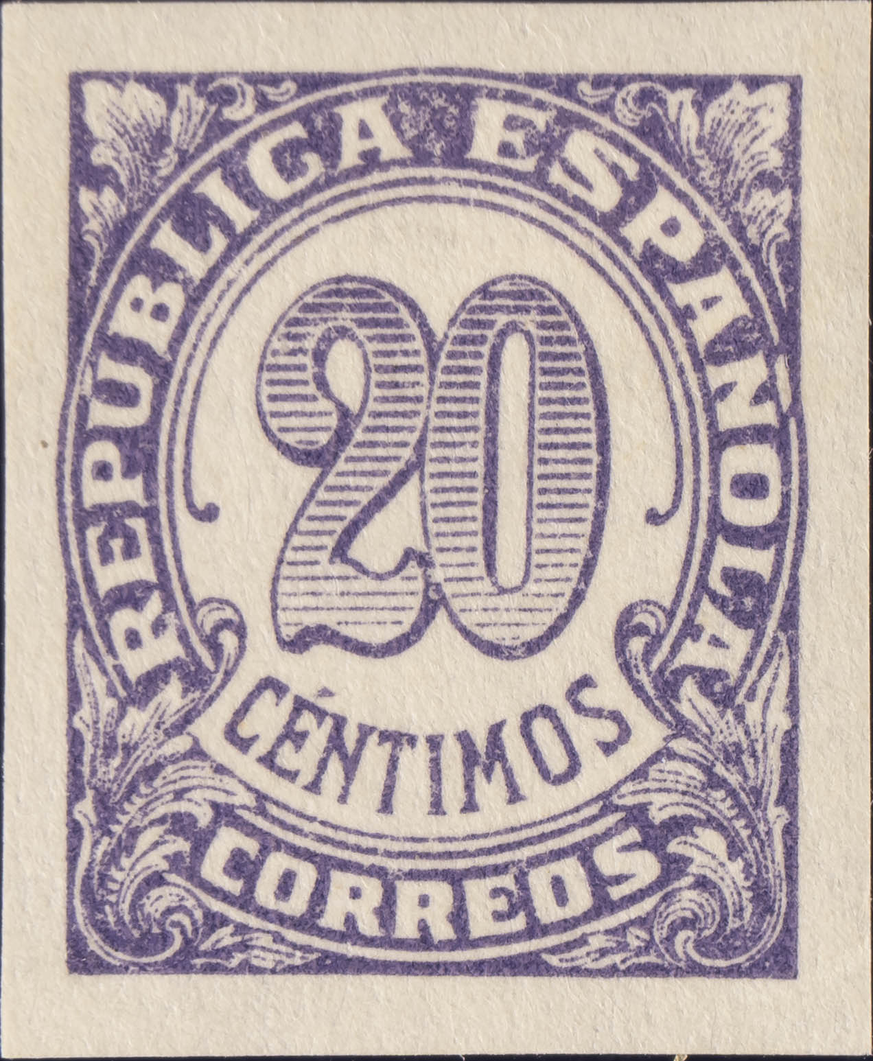 ★ 748s. 1938. 20 cts violeta. SIN DENTAR. MAGNIFICO. Edifil 2020: 22 Euros